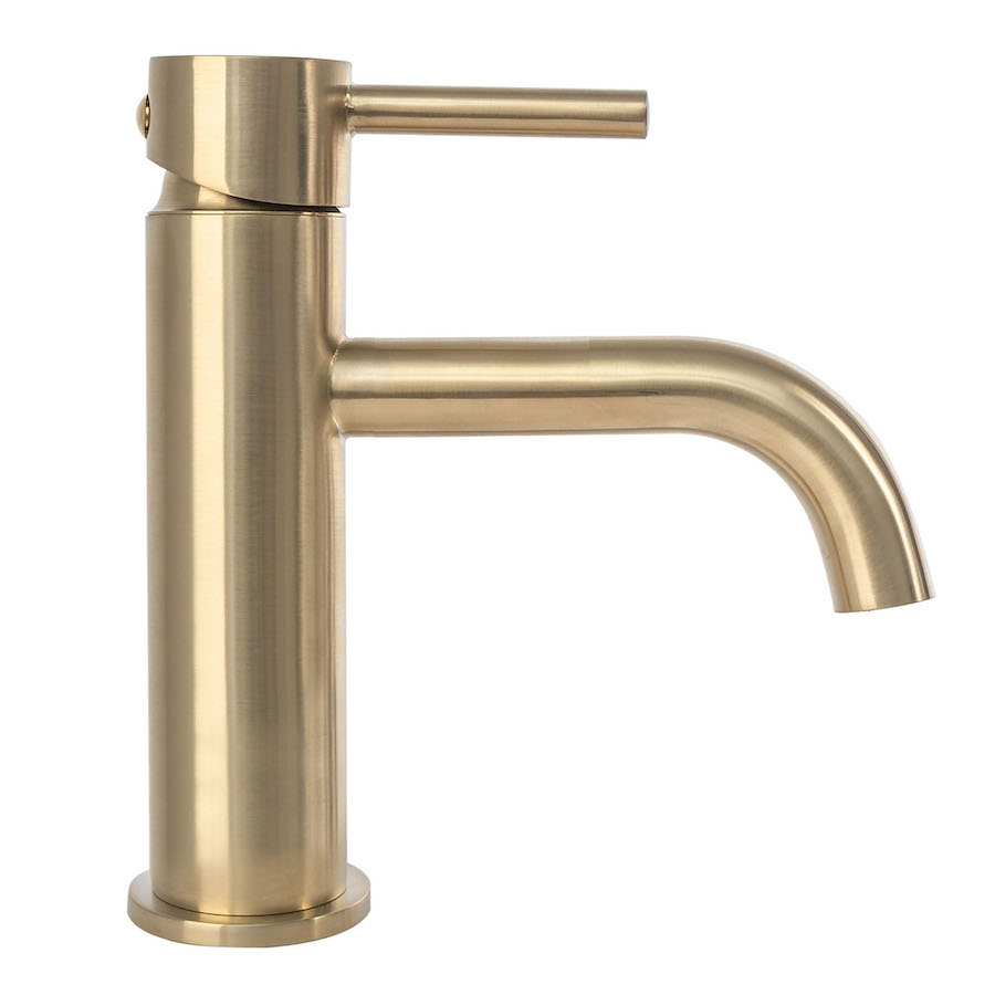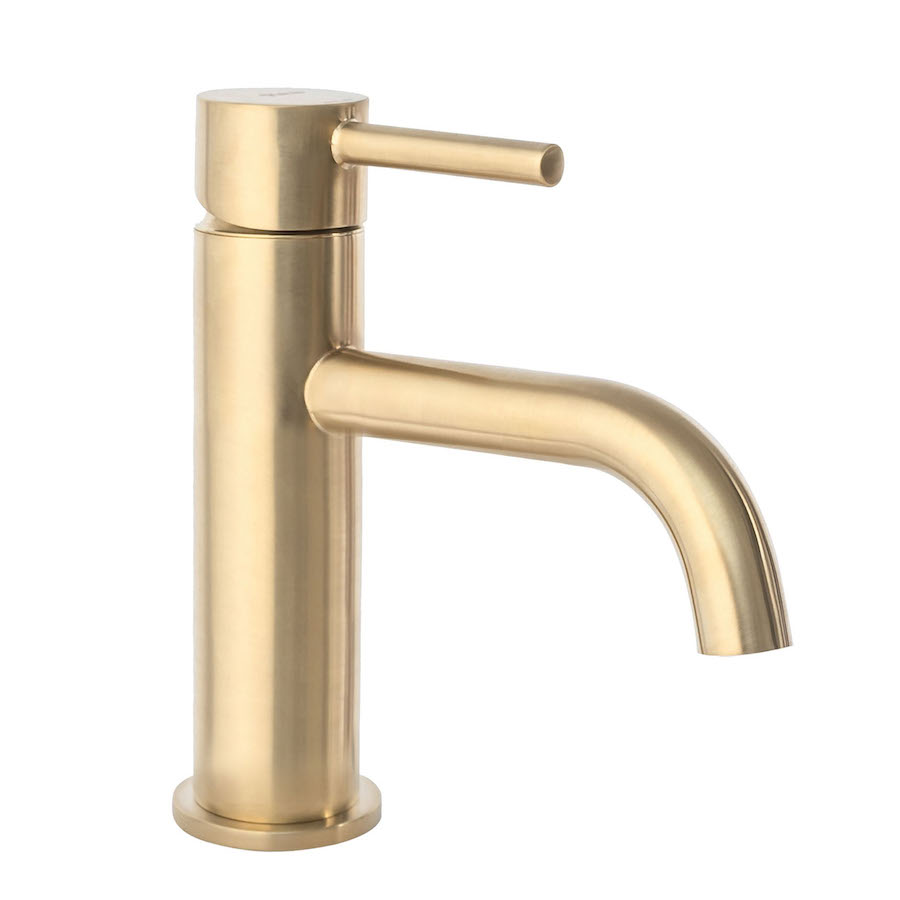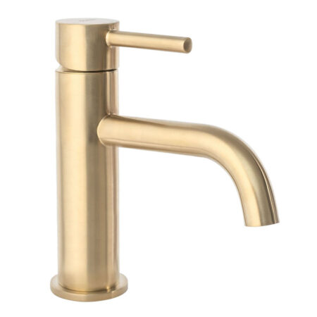 Umývadlová batéria nízka s ohnutým výtokom v brúsenej zlatej farbe