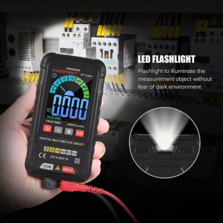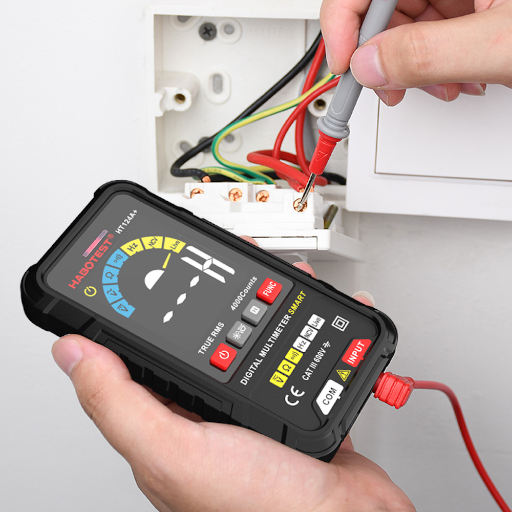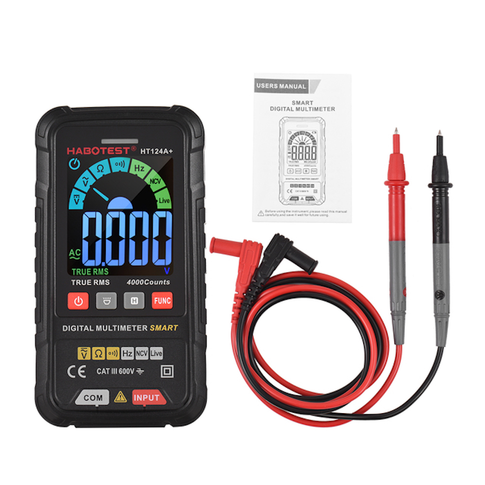 Digitálny univerzálny multimeter Habotest HT124A+ je šikovný prístroj, ktorý prekvapí obrovskými možnosťami. Umožňuje okrem iného merať s vysokou presnosťou striedavé a jednosmerné napätie, odpor, spojitosť alebo frekvenciu. Okrem toho ponúka funkciu Live Test, umožňuje bezkontaktnú detekciu napätia (NCV) a mnoho ďalšieho. Dôležité je, že multimeter má praktické tlačidlá, pomocou ktorých môžete efektívne zvoliť funkciu.
