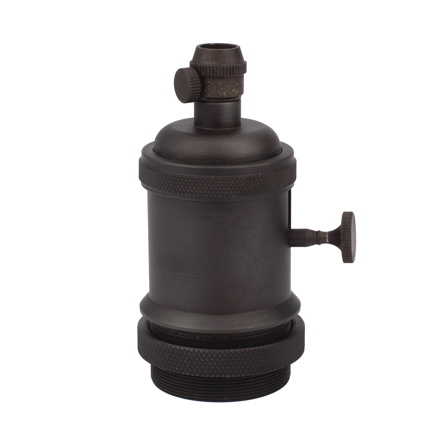 Historická kovová objímka s kovovým držiakom kábla na žiarovky s päticou E27. Predstavujeme vám masívny komponent v starodávnom štýle pre Vaše svietidlo. Ideálna do miestnosti s historickým nádychom. Nastaviteľná skrutka na odlahčenie vodiča (kábla). Táto jedinečná industriálna objímka je kompatibilná so všetkými našimi káblami (okrem retro lanových káblov) a žiarovkami s päticou E27. Vynikajúca kvalita a dokonalý retro dizajn.