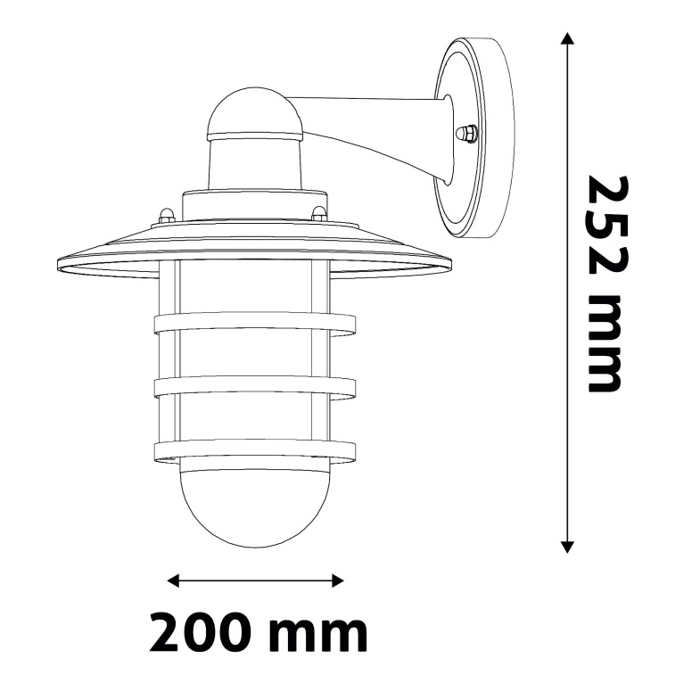 Vonkajšia nástenná lampa HERMOSA DOWN, IP44 na 1 žiarovku s veľkým závitom E27 o príkone max 20W, fungujúce na napätí 220-240V. Toto vonkajšie svietidlo v tvare starožitnej lucerny je perfektným riešením pre osvetlenie vchodu do domu, pergoly, terasy, apod. Jedná sa o kvalitné vonkajšie svietidlo ktorého robustné telo je vyrobené z kvalitného kovu, ktorý nehrdzavie. Narozdiel od lacných plastových vonkajších nástenných svietidiel, ktoré pôsobením vonkajších podmienok, najmä slnečného žiarenia, postupne krehnú, menia farbu a rozpadajú sa, toto sa Vám s tým naším naozaj nestane. Kryt žiarovky je vyrobený zo skla. Kryt rozptyľuje svetlo najmä smerom nadol, čiastočne aj do strán.