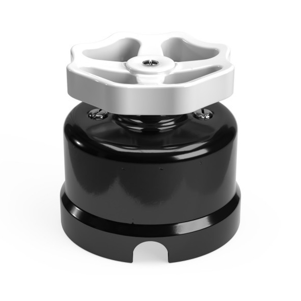Čierny porcelánový prepínač s gombíkom je vintage komponent používaný na ovládanie jedného svetla z viacerých miest. Tento prepínač vyrobený z vysoko kvalitných materiálov a zdokonalený elegantným povrchom je ideálny pre tých, ktorí chcú vo svojom dome alebo kancelárii dosiahnuť vintage atmosféru.