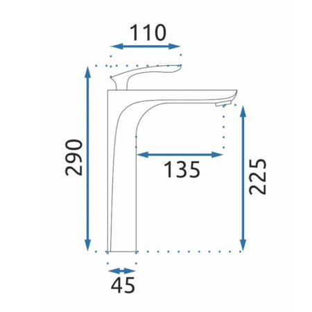 Predstavujeme Vám novú mimoriadne designovú a veľmi modernú kúpeľňovú umývadlovú batériu. Táto batéria sa dokonale hodí do Vašej kúpeľne, kde vyplní priestor a pritom zachová krásny vzhľad a estetiku interiéru. Batéria je určená na montáž na dosku vedľa umývadla a vďaka špeciálnej fáze výroby je batéria veľmi odolná a ľahko sa čistí. Dokonale sa hodí k ostatným prvkom interiérov, zariadených v klasickom aj modernom štýle. Moderná umývadlová vysoká batéria je vyrobená z vysoko kvalitnej mosadze s úpravou.