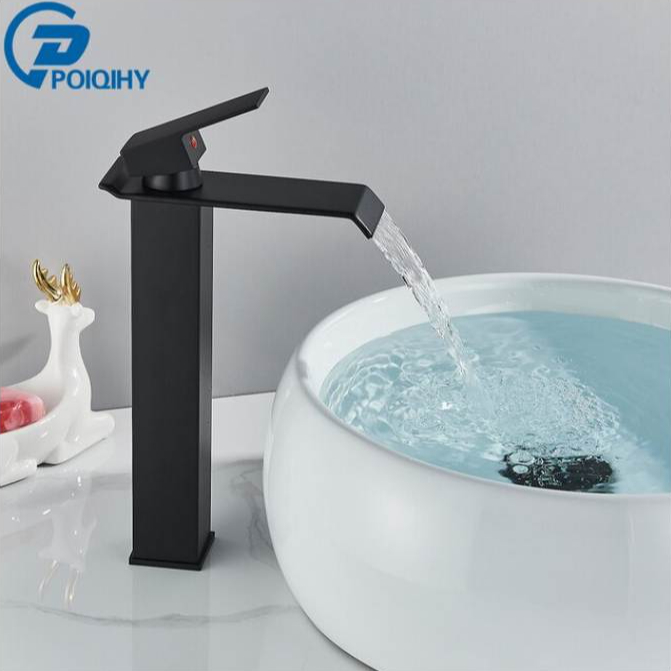 Vysoká vodovodná batéria s vodopádom – čierna farba