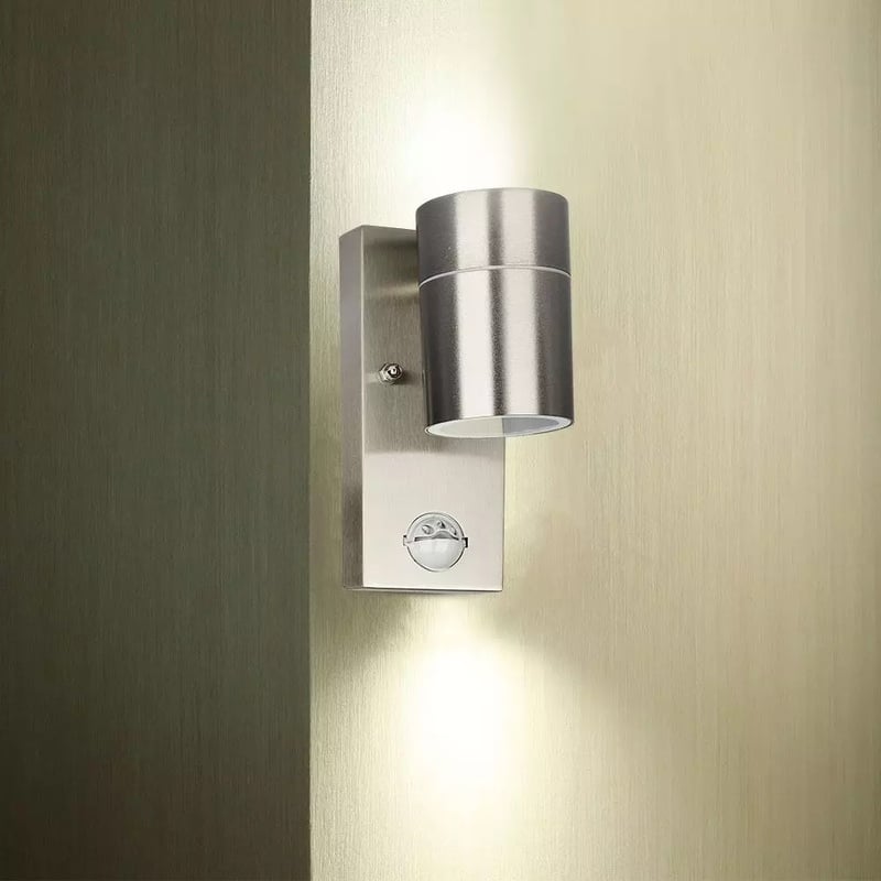 Záhradné nástenné svietidlo so senzorom 2 x GU10, IP44. Držiak lampy je vybavený snímačom pohybu a snímačom súmraku, ktoré umožňujú meniť dobu svietenia a intenzitu okolitého svetla.