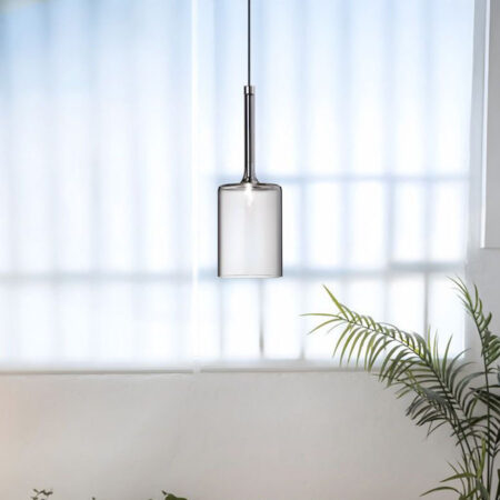 Závesná sklenená lampa v šedej farbe – FARBA ZRKADLA – Štýlová elegancia pre váš interiér. Vneste do svojho interiéru teplo a nadčasový štýl vďaka sklenenej závesnej lampe v šedej/zrkadlovej farbe. Jej moderná forma v kombinácii s jemným odtieňom skla ideálne zapadá do aranžácie. Transparentná šedá farba dodáva eleganciu a vytvára útulnú atmosféru nad stolom, v obývačke alebo v komerčnom priestore. Lampa je vyrobená z vysoko kvalitného skla a kovu – jej štíhle sklenené tienidlo a estetická stropná maska predstavujú spojenie minimalizmu a elegancie.