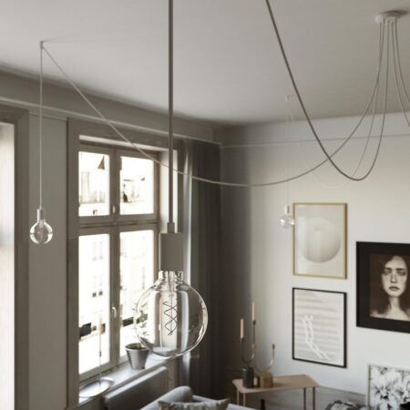 Svietidlo Pavúk vyrobený z kovových objímok a kovovej nádhernej rozety. Každé rameno má dĺžku 4 metre, vďaka čomu zapadne do každého prostredia. Tento kvalitný model Pavúka je vyrábaný a zostavovaný v Taliansku a je certifikovaný CE certifikátom.
