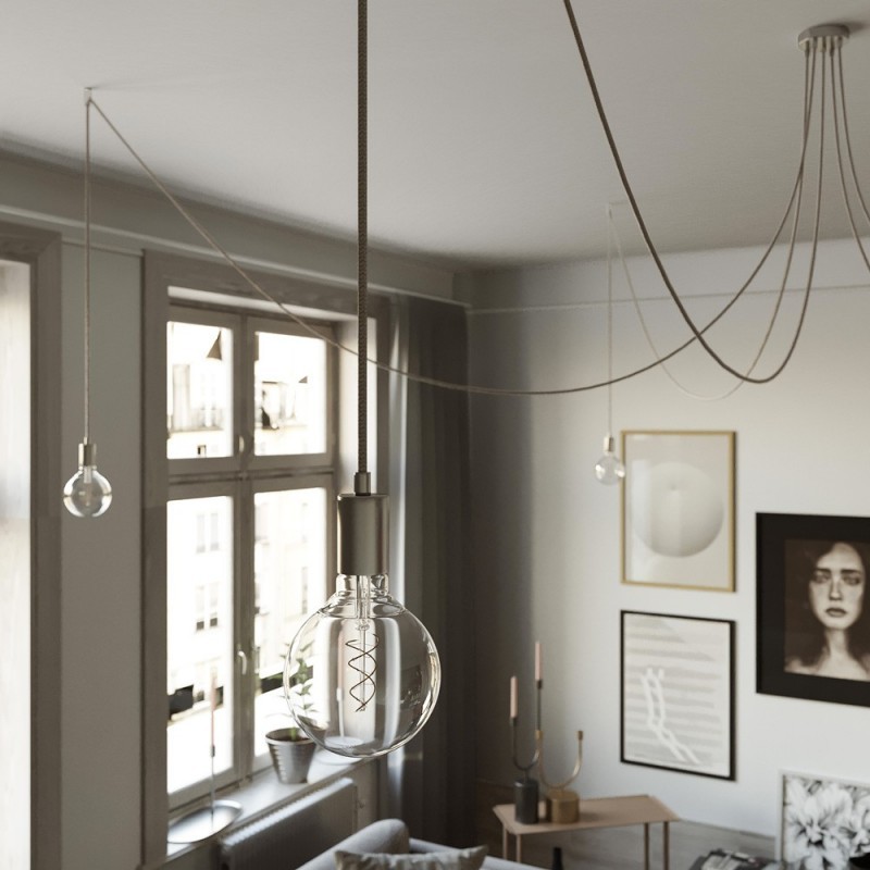 Svietidlo Pavúk vyrobený z kovových objímok a kovovej nádhernej rozety. Každé rameno má dĺžku 4 metre, vďaka čomu zapadne do každého prostredia. Tento kvalitný model Pavúka je vyrábaný a zostavovaný v Taliansku a je certifikovaný CE certifikátom.