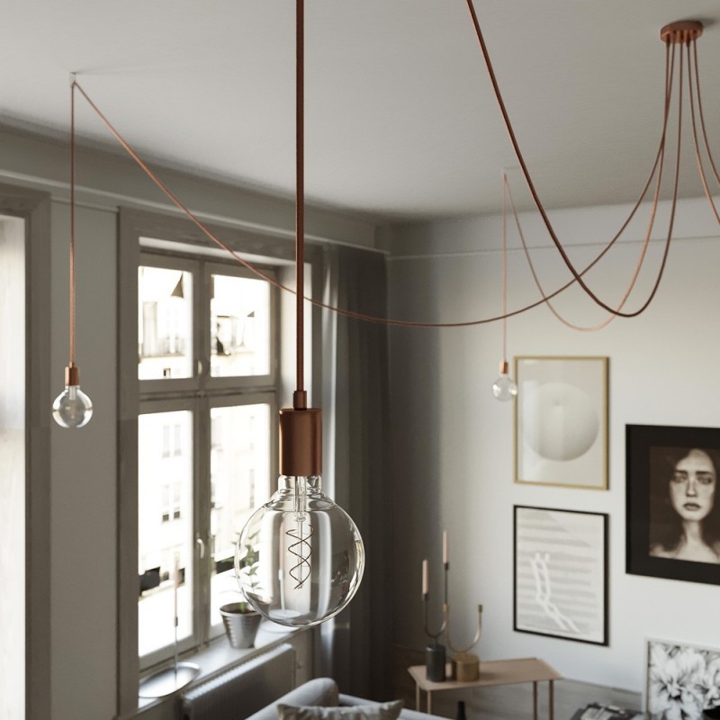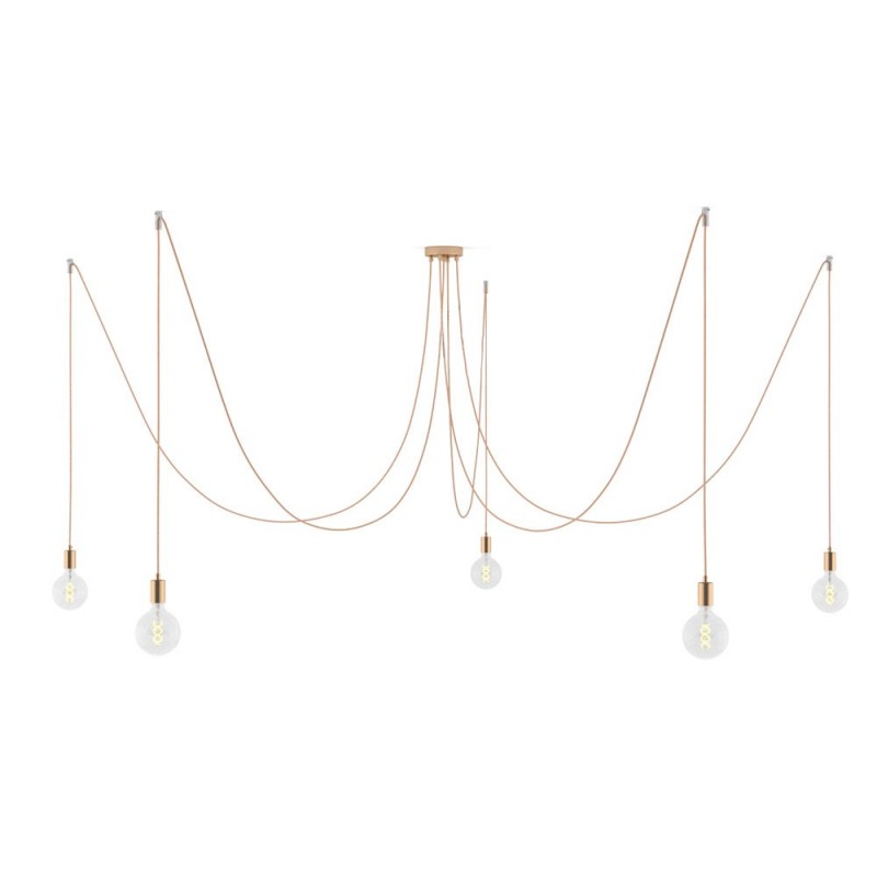 Závesné svietidlo pavúk s 5 päticami v medenej farbe