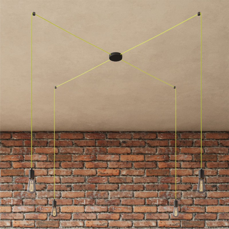 Svietidlo Pavúk vyrobené zo štyroch objímok a kovovej rozety. Pavúk je jedinečné a očarujúce závesné svietidlo, ktoré má funkčnú aj dekoratívnu funkciu zároveň. Dodávané úchyty káblov vám umožnia vytvoriť 4 lampy po stranách. Vďaka rôznym dostupným kovovým povrchom môžete svoj 4-svetelný pavúk zladiť s vaším interiérom, od saténového kovu, ktorý je ideálny pre vintage alebo industriálne prostredie, až po matnú bielu, ktorá dokonale interpretuje škandinávsky štýl.