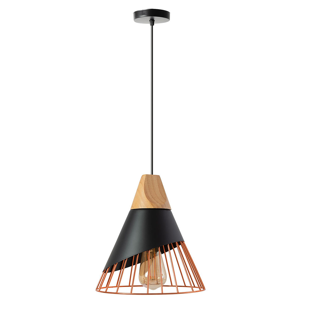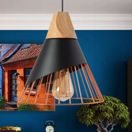 Závesné svietidlo v škandinávskom štýle s drevenou ozdobou. Lampa je vyrobená z dreva a kovu (vrátane rámu). Lampa má najobľúbenejší závit pre žiarovku E27. Dĺžku kábla možno prispôsobiť miestnosti alebo usporiadaniu. V sortimente viacero farebných prevedení.