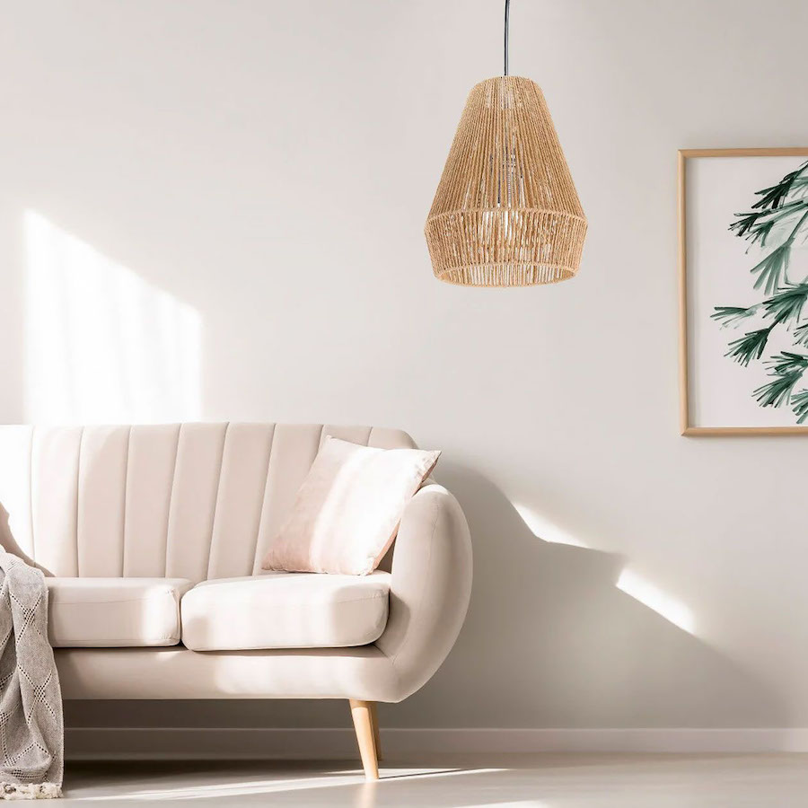 Závesné svietidlo z jutovej šnúry s vysokým tienidlom